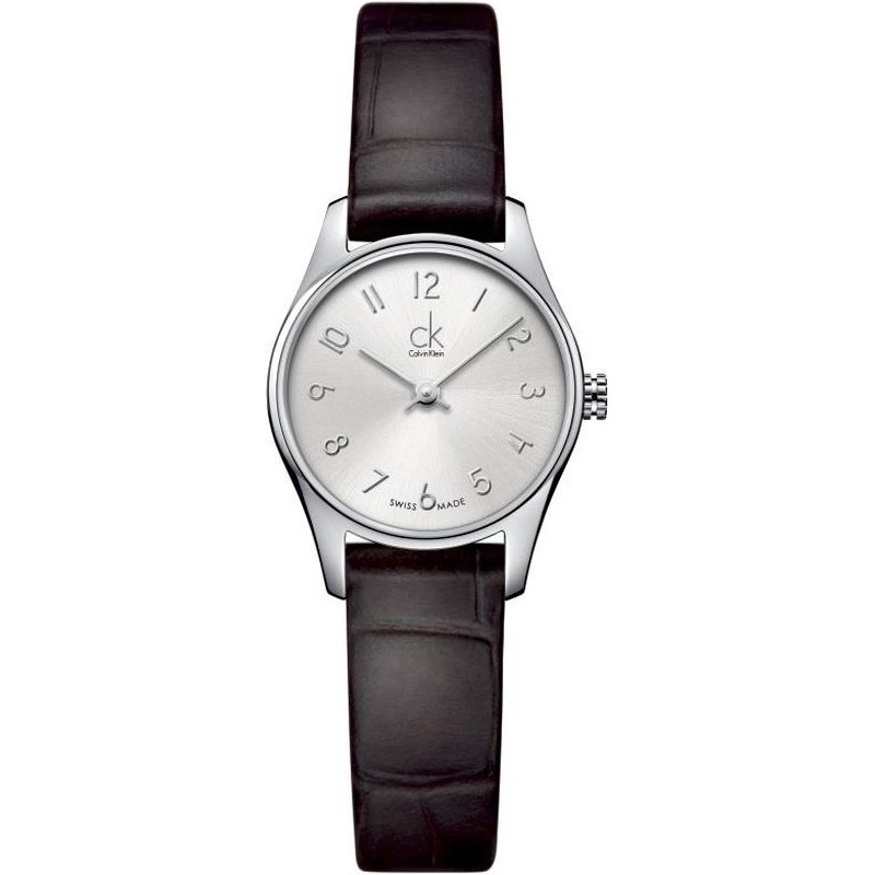Marca: Calvin Klein; Colección: New Classic; Código del producto: K4D231G6; Tipo de articulo: Reloj; Género: Mujer; Funciones: Solo Tiempo; Tipo de Movimiento / Mecanismo: Cuarzo - Bateria; Forma de la Caja: Redonda; Material de la Caja: Acero Inoxidable; Color de la Caja: Acero; Diámetro de la Caja Ø: 24 mm; Tipo de Esfera: Analógica; Color de la Esfera: Plata; Material de la Correa: Cuero; Color de la Correa: Marrón; Resistencia al agua: 30 metros / 3 bares.